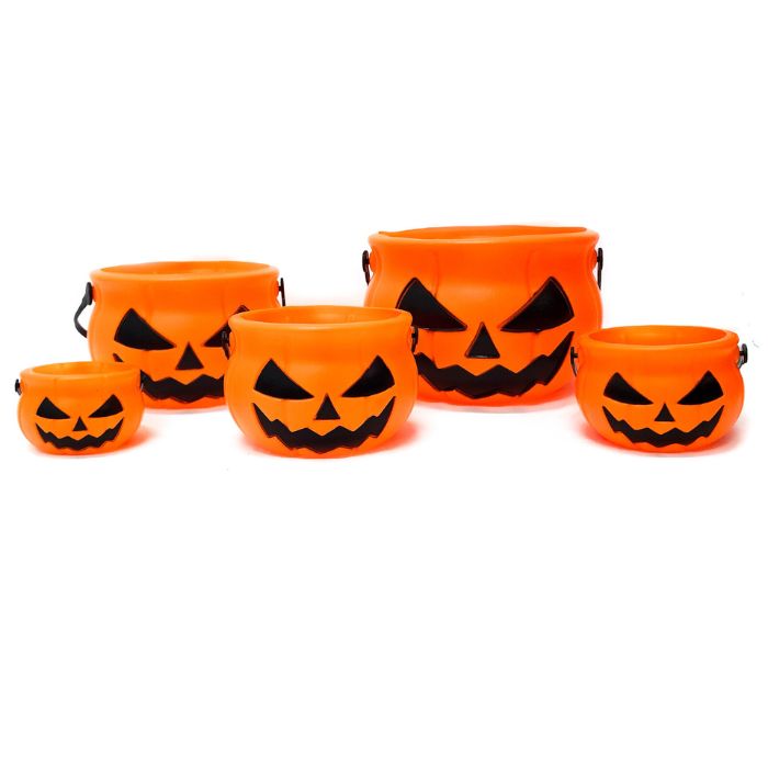 - Each set contains 5 pumpkin buckets in a variety of sizes!