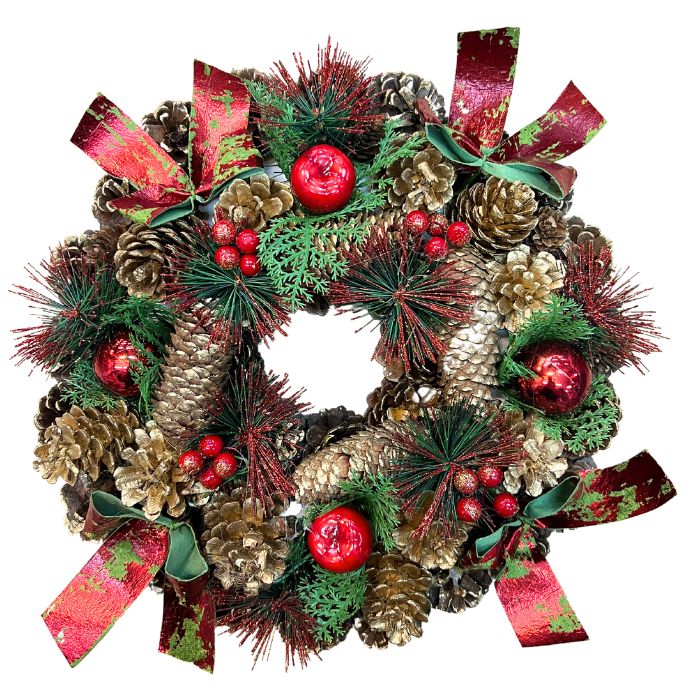 - Christmas wreath with beautiful gold acorn, ribbons and berries