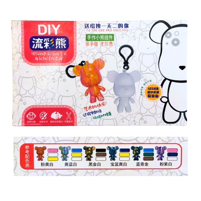 - Each box includes a bear keychain, 3 paint pots, a paint brush and a tiny beaker