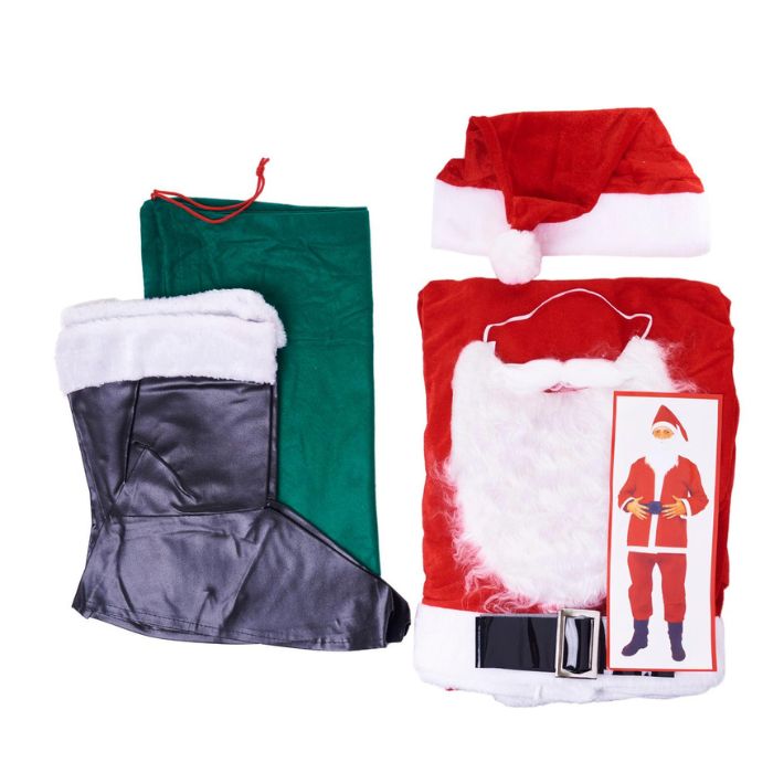 - Each Set includes a santa hat, jacket, beard, belt, trousers, santa bag, and boots cover.